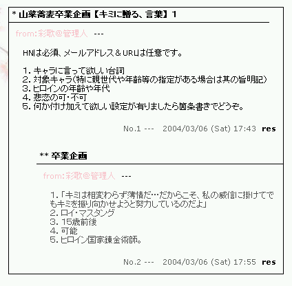 書き込んでみる? ⇒ 書き込み募集は終了しました。見本ページのみの展示です。 or
